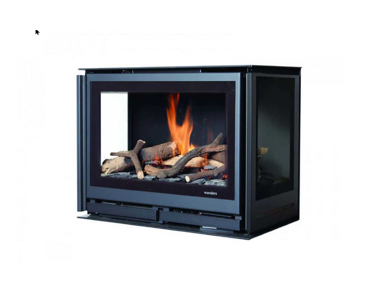Wanders Square 60G U – șemineu pe gaz cu design minimalist, vizibilitate pe 3 laturi, control prin telecomandă și eficiență ridicată pentru renovări rapide.